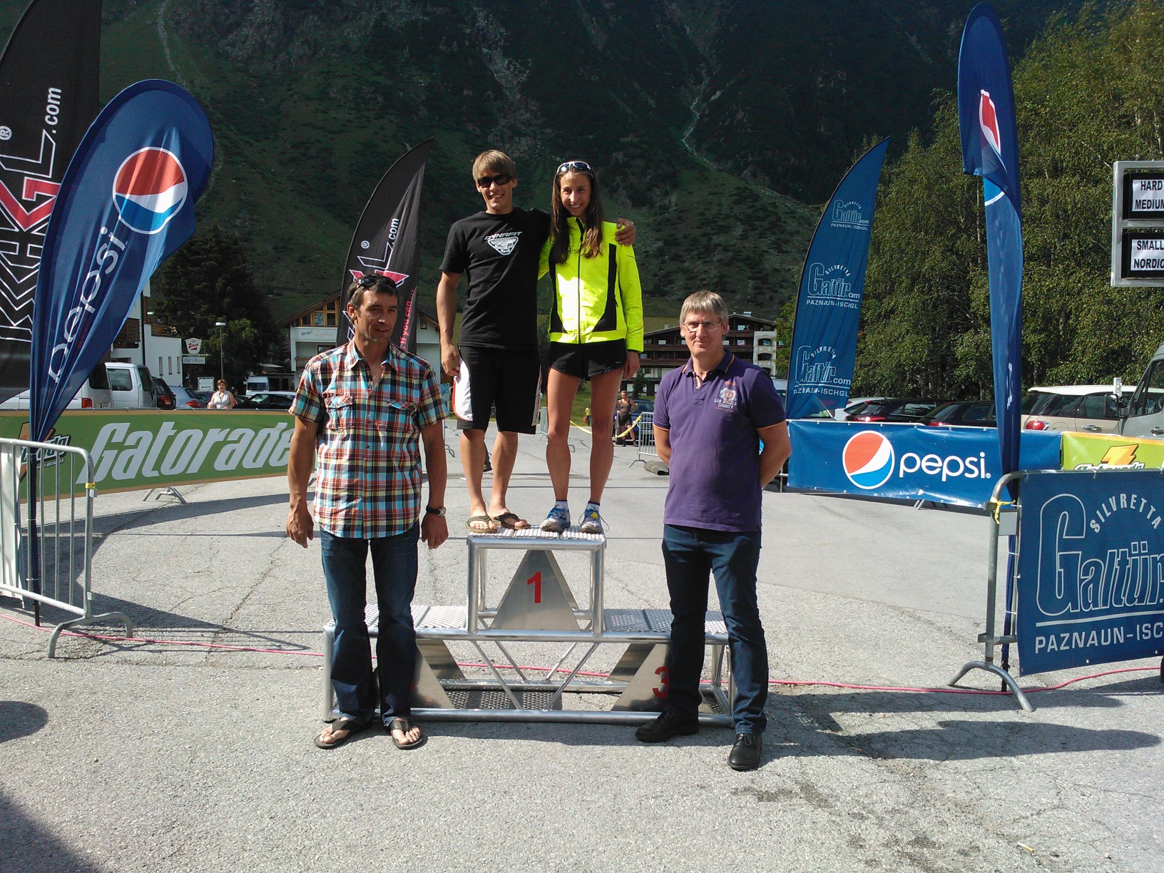 Großteils auf Forststraßen ging es von dort Richtung Tal. Heraus kam ich in Galtür, aber ehe es ins Ziel ging, galt es noch eine Ehrenrunde via Wirl und Tschaffein zu laufen. Die letzten Kilometer wurde ich von einem Mountainbiker (1. Dame) begleitet. Ein schönes Gefühl. Als erste Dame erreichte ich schließlich das Ziel (Sport- und Kulturzentrum Galtür).