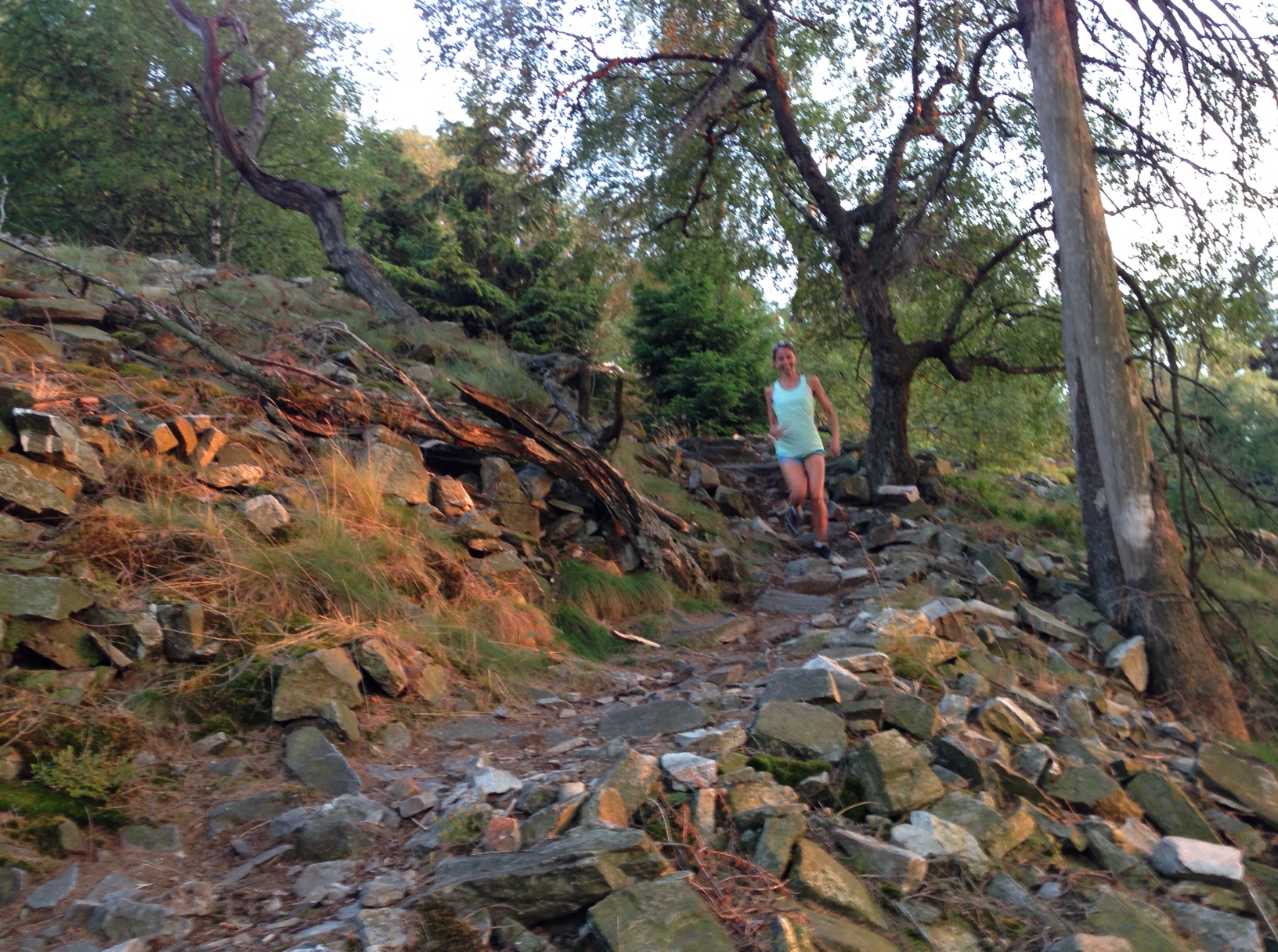 Wir wissen, wir sind spät losgelaufen; jetzt aber wird es unerwartet schnell dunkel. Eigentlich wollten wir die Trails runter laufen, was wir anfangs auch tun. Dann aber müssen wir – zumal wir keine Stirnlampen dabei haben – auf die Bundesstraßen wechseln. Wir rennen ein ganz ordentliches Tempo: Wir wollen hier weg. Wann immer uns ein Auto mit teilweise 100 und mehr Sachen entgegenkommt, bleiben wir kurz stehen, machen einen Schritt zur Seite und dann geht es weiter. Ein bisschen Abenteuer gehört dazu. War ein schöner Lauf …