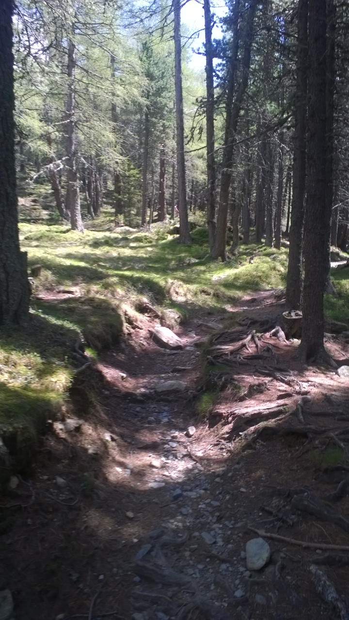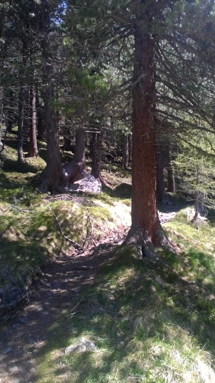 WP_20140524_015Ich packe meine sieben Zwetsch­ken (eigentlich nur eine dünne Windjacke zum Runterfahren – die passt in die Satteltasche) und radle los. Es zieht mich in die Natur! Via Schloss Ambras pedaliere ich nach Lans, dann nehme ich die Römerstraße und hinter dem Olympiaexpress biege ich links rauf. Vorbei an Heiligwasser bin ich endlich zumindest am Waldweg. WP_20140524_017Ich trete also den breiten Weg in großzügigen Serpentien rauf und üblicherweise hätte ich die Variante via Patscheralm genommen. Doch heute denke ich ans Laufen und wisst ihr was? Über die Lanseralm ist es einfach viel schöner! WP_20140524_019 Den Weg kenne ich gut und ich weiß, dass ich mit meinen nicht wirklich vorhandenen MTB-Trailkünsten sicher ein paar Mal absteigen werde müssen und es war auch so, aber es hat sich 1000mal gelohnt. WP_20140524_026 Bis zur Brücke ging es ganz gut, das Stück vor der Lanseralm ist was für Könner, danach geht’s wieder. WP_20140524_037 Und weil mir ein paar Schritte zu Fuß nichts ausmachen *gg* und es hier einfach viel schöner als auf der Alpenautobahn ist, genieße ich. WP_20140524_018 Ein Downhiller kommt mir entgegen: „Da rauf?“ kombiniert mit einem würdigenden Blick. Naja, zumindest hab ich das Bike so gut im Griff, das ich merke, wenn ich aus den Pedalen raus muss, ich bin also nicht umgefallen oder so und wie gesagt: Es war geil!